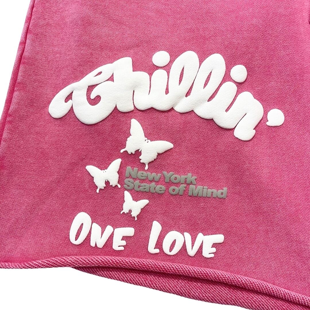 CHILLIN' -NY BUTTERFLY PIGMENT SWEAT SHORTS- PINK