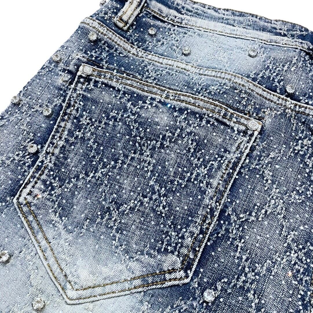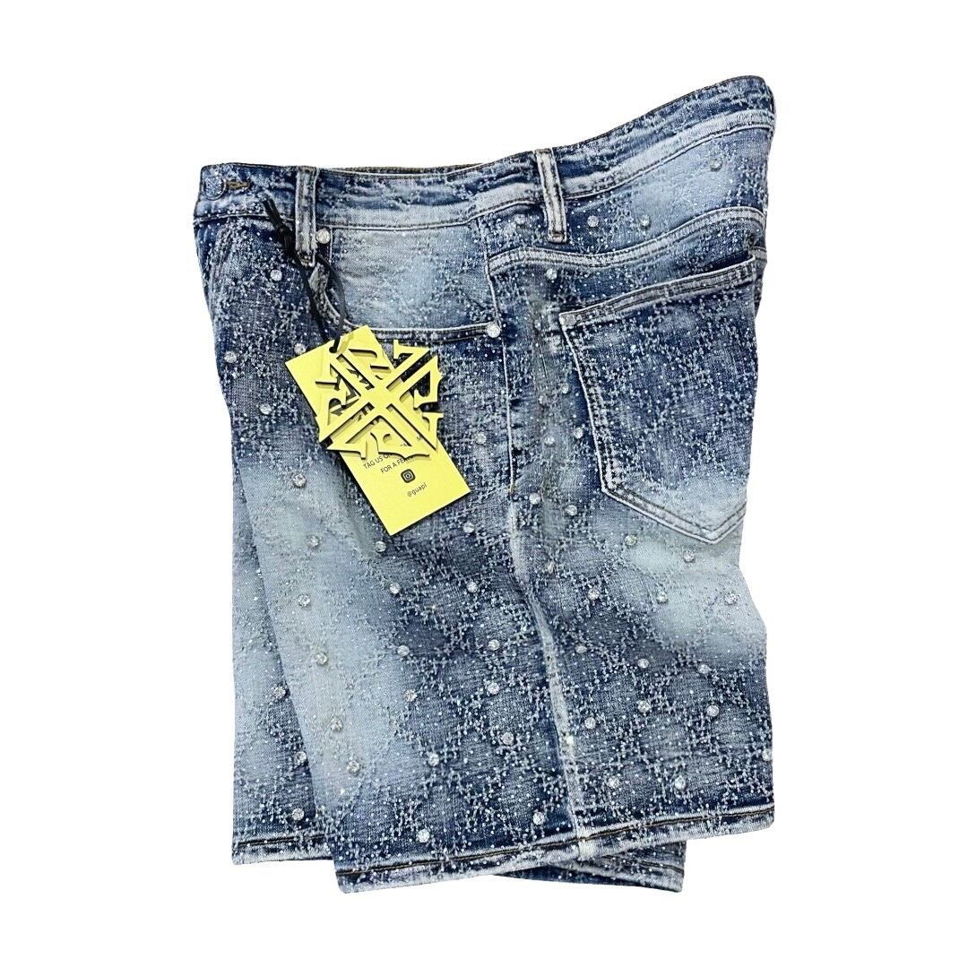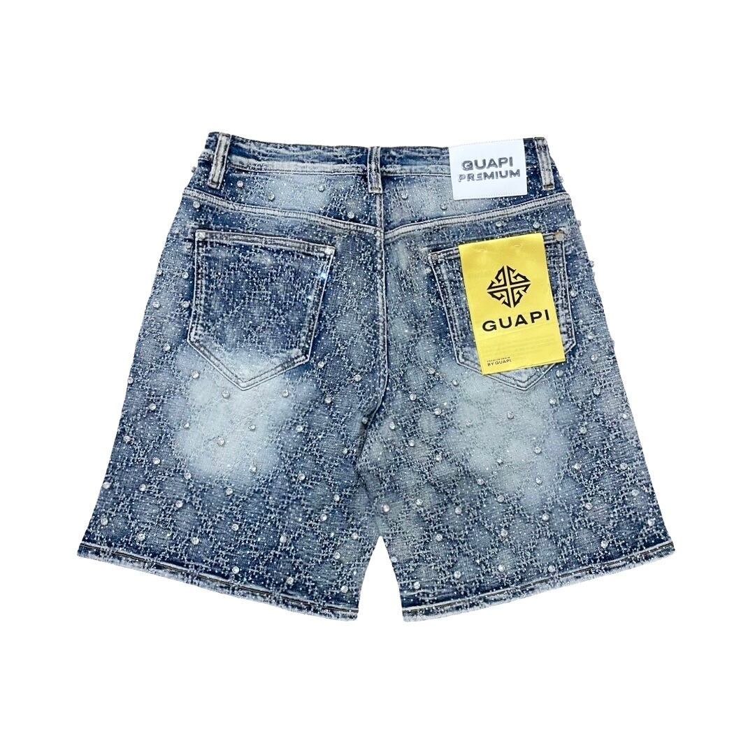 GUAPI -AQUA BLUE EMBELLISHED DENIM SHORTS-