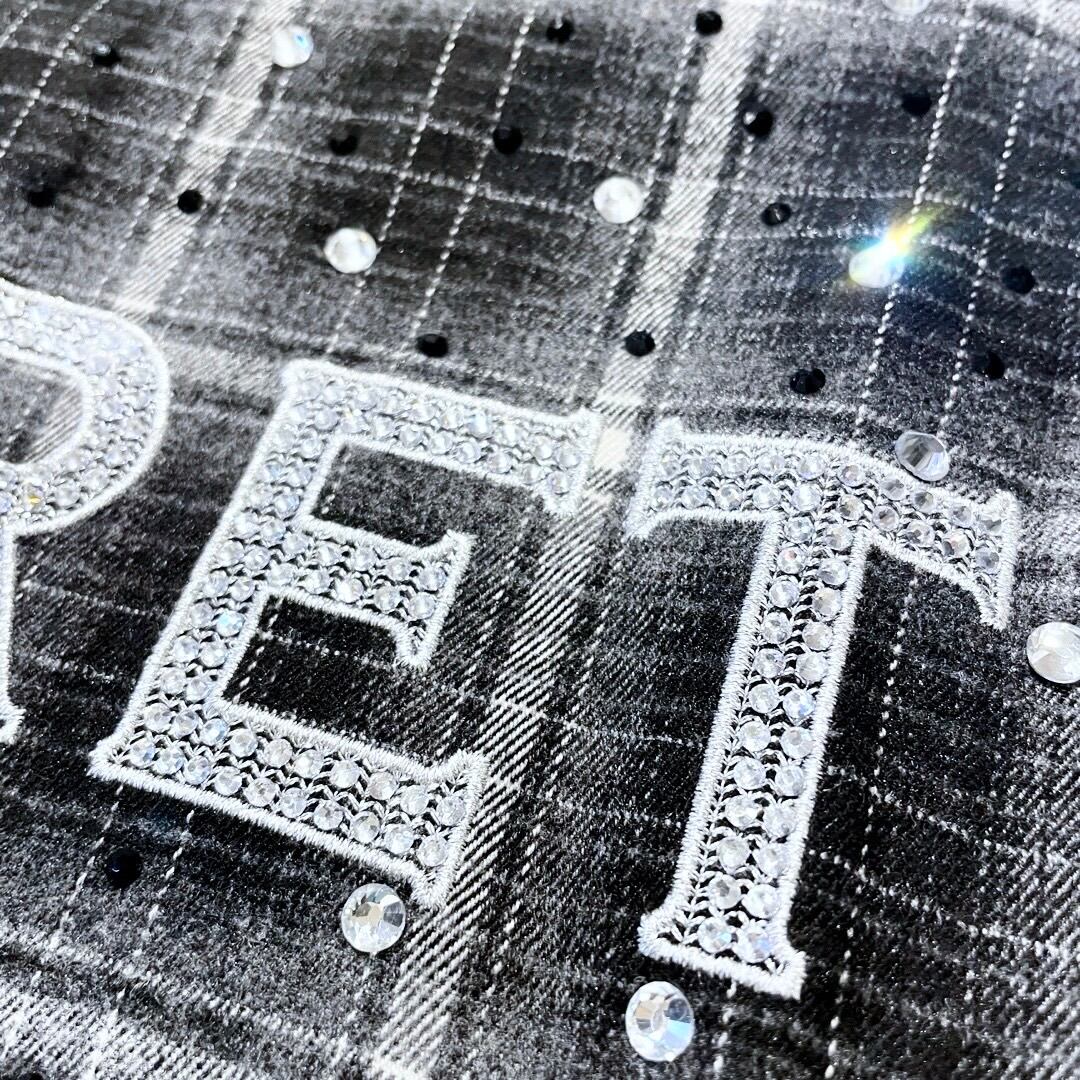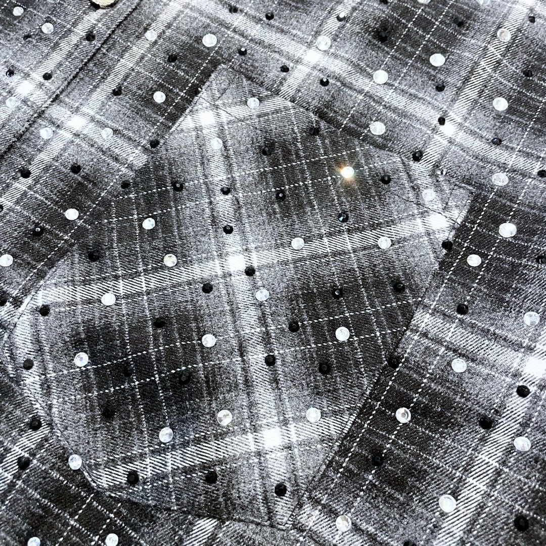 上質なコットンフランネル生地に、シルバーとブラック2色のストーンを贅沢に散りばめたチェックシャツ。