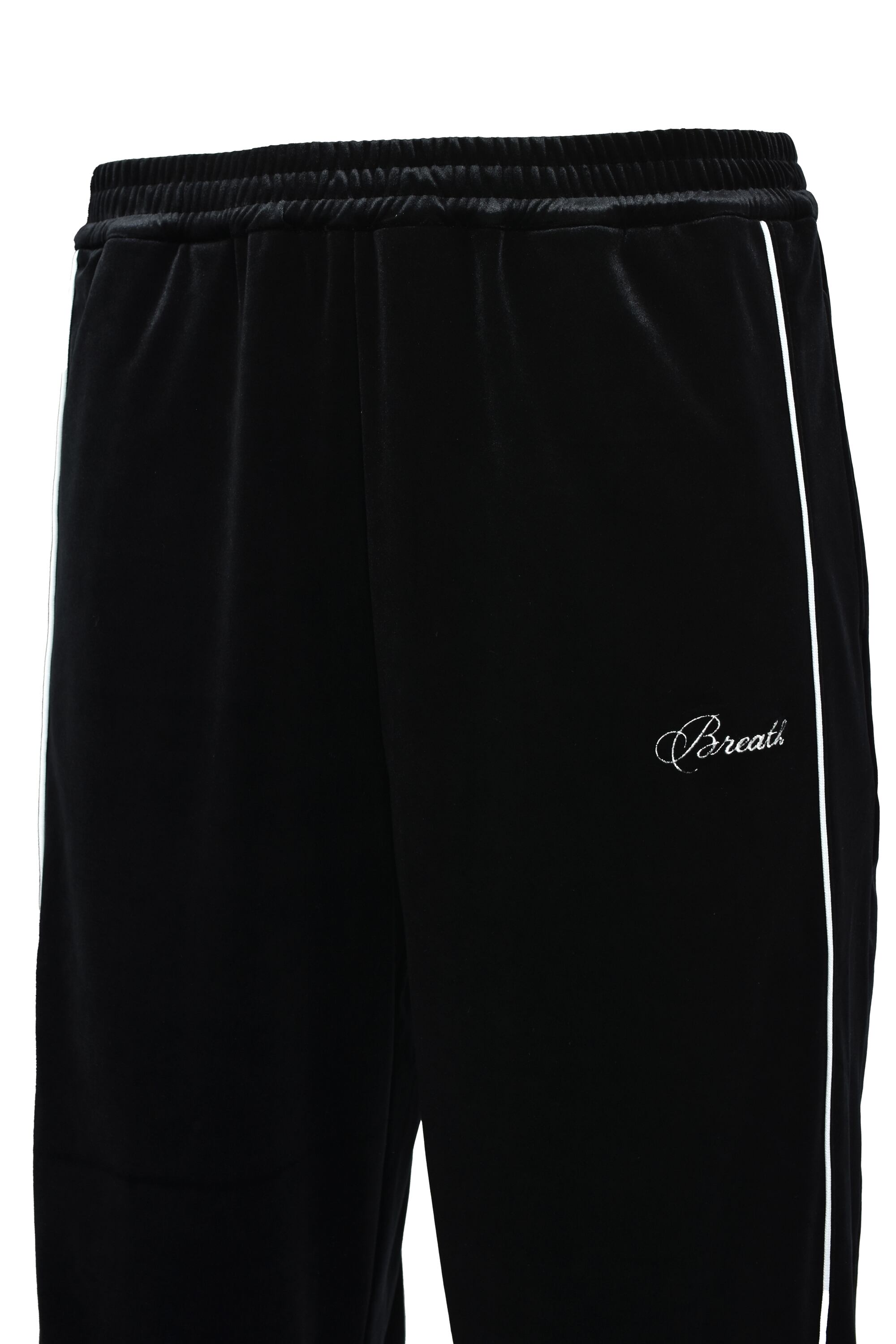 BREATH - SCRIPT LOGO PIPING VELOUR TRACK PANTS - " BLACK "