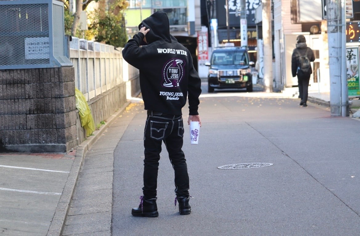 YOUNG JESUS -World Wide Series Zip up Hoodie- Black / Purple