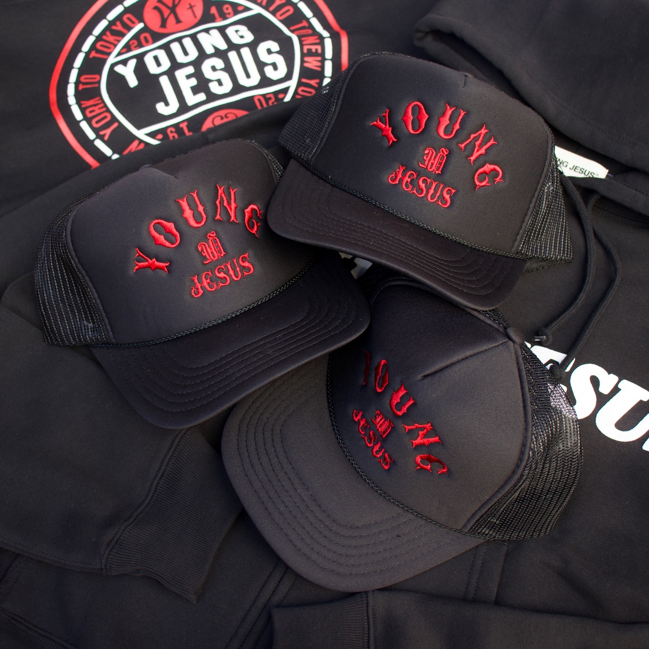 YOUNG JESUS -Trucker Hat- Black / Red
