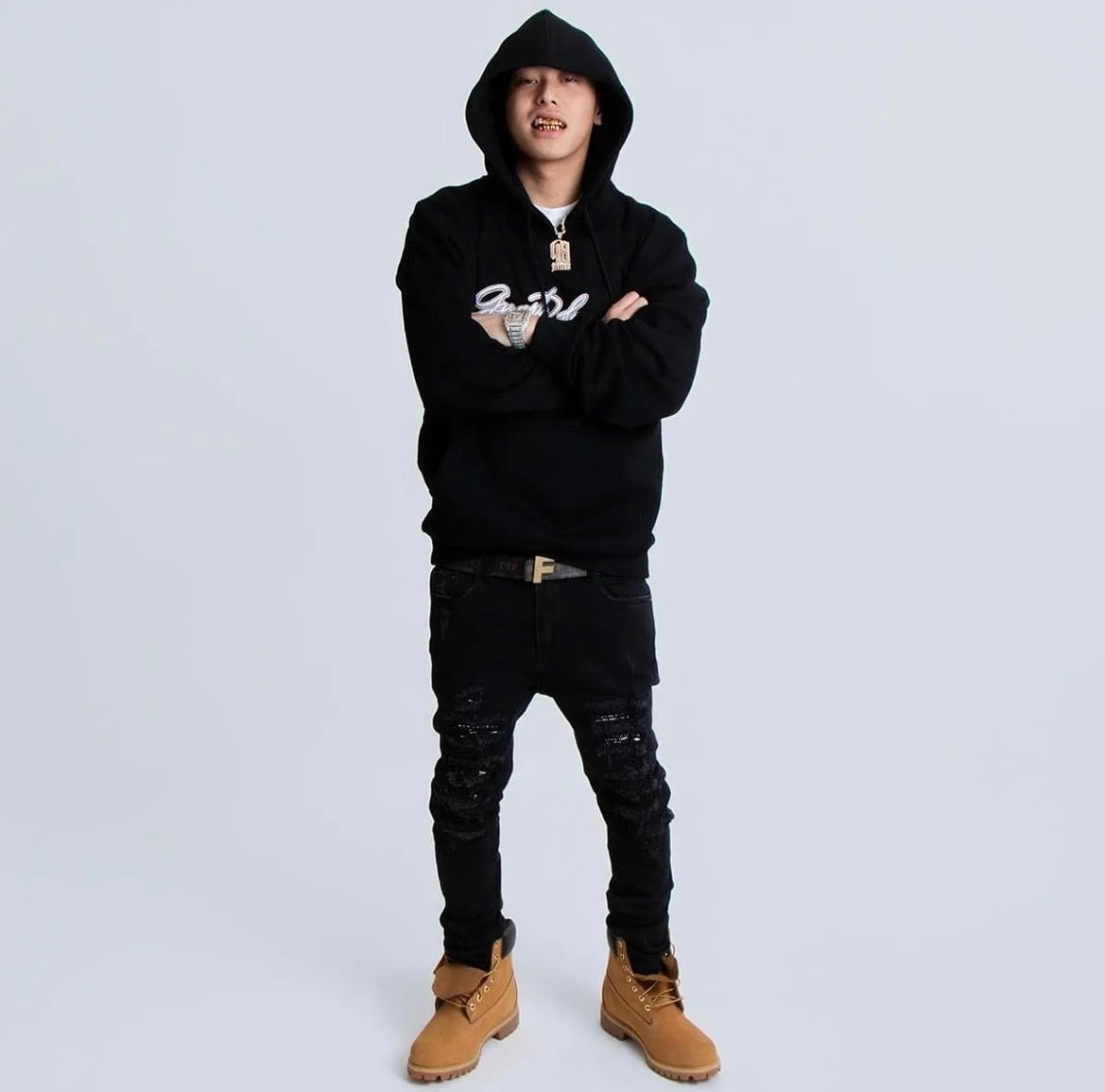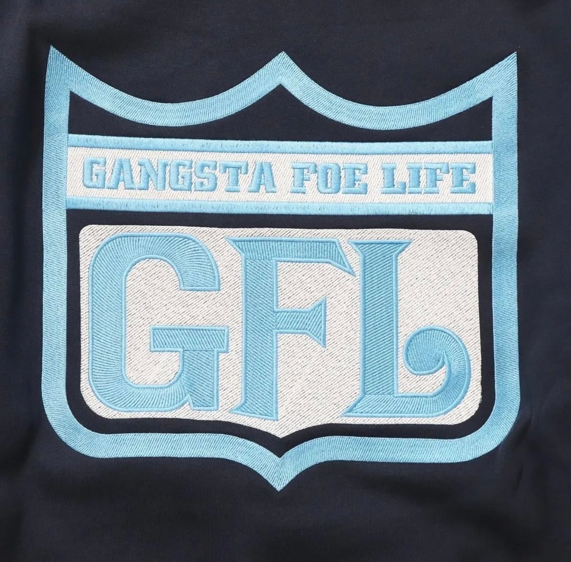 GFL (gangsta foe life) 当時の定番ロゴカラーリングを忠実に再現してフロント&バック共にAll刺繍したフーディー。