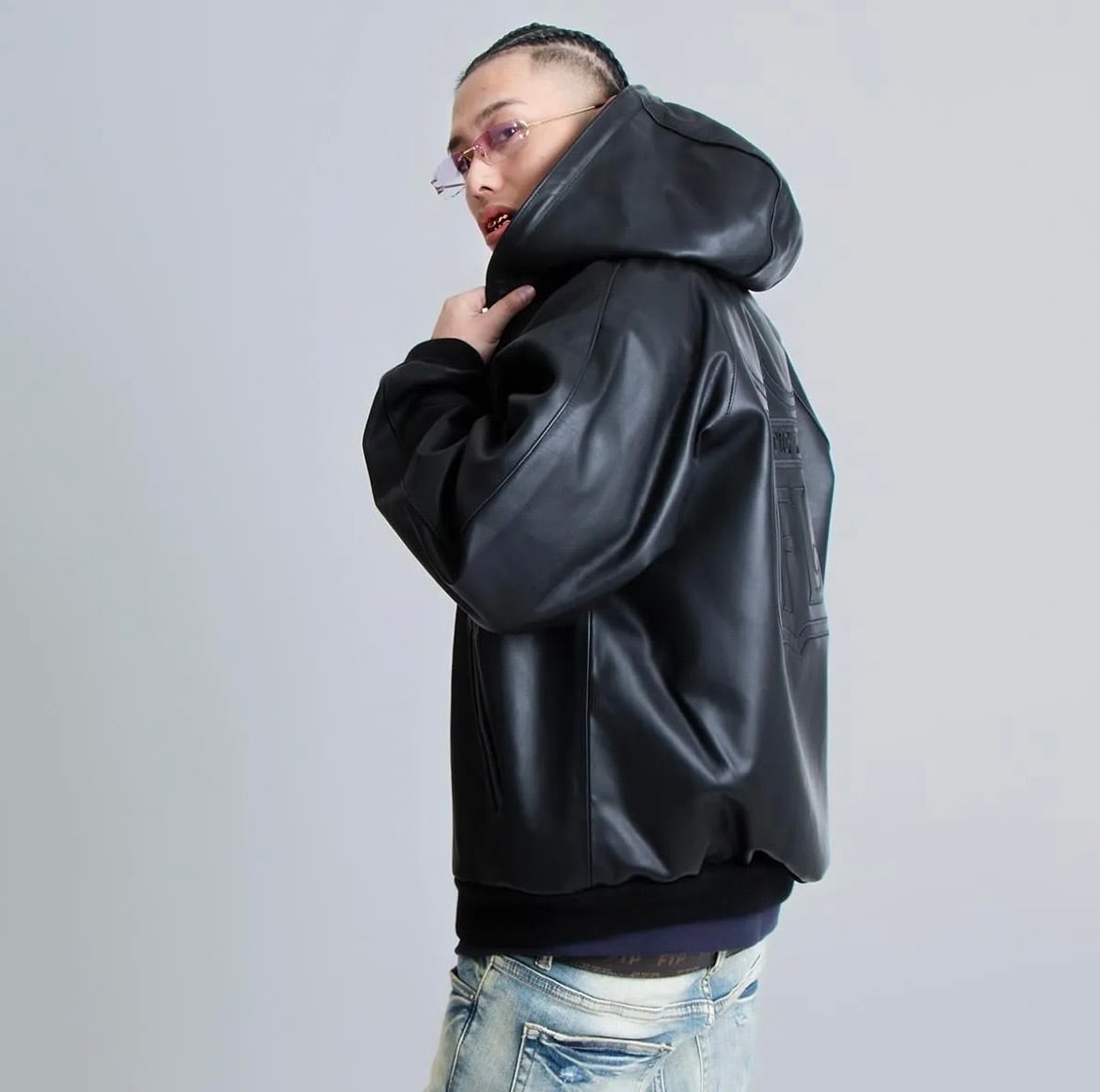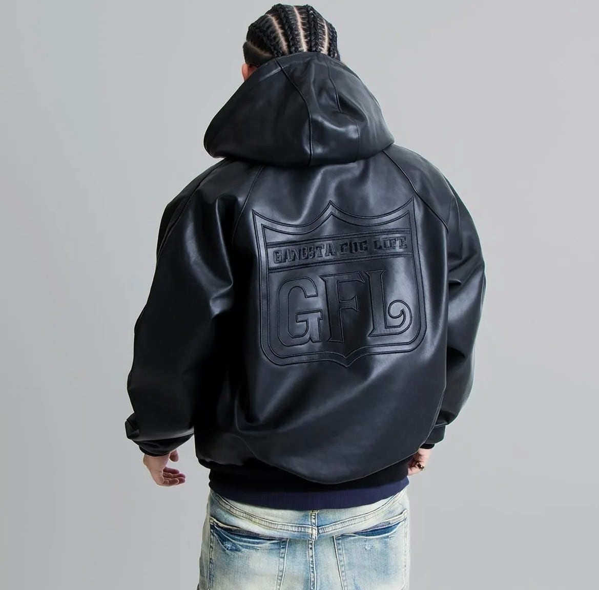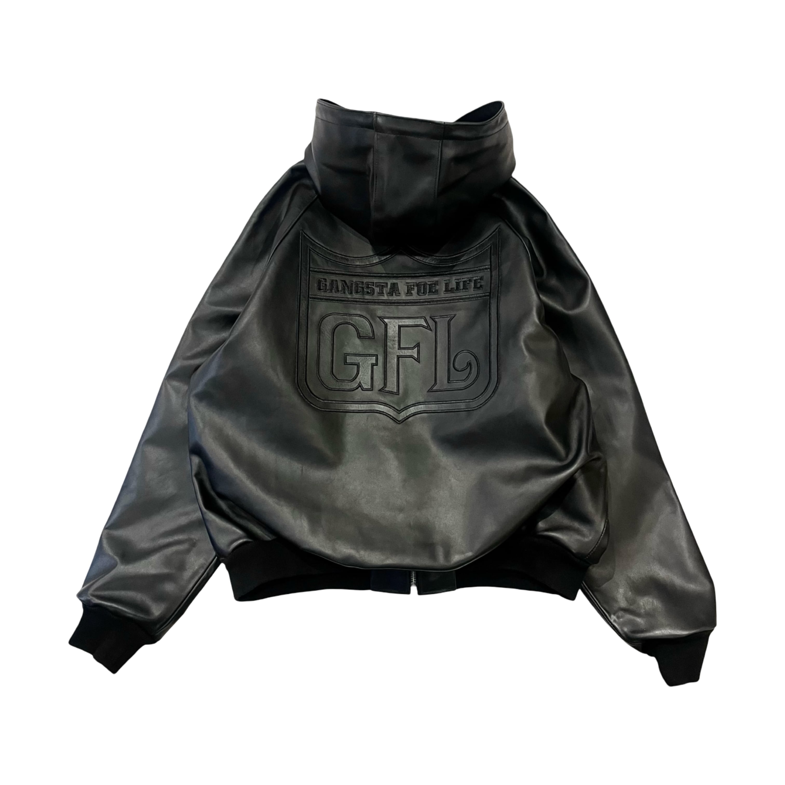 GFL (gangsta foe life) 上質な牛革を贅沢に使用した、フーディスタイルのレザージャケット。