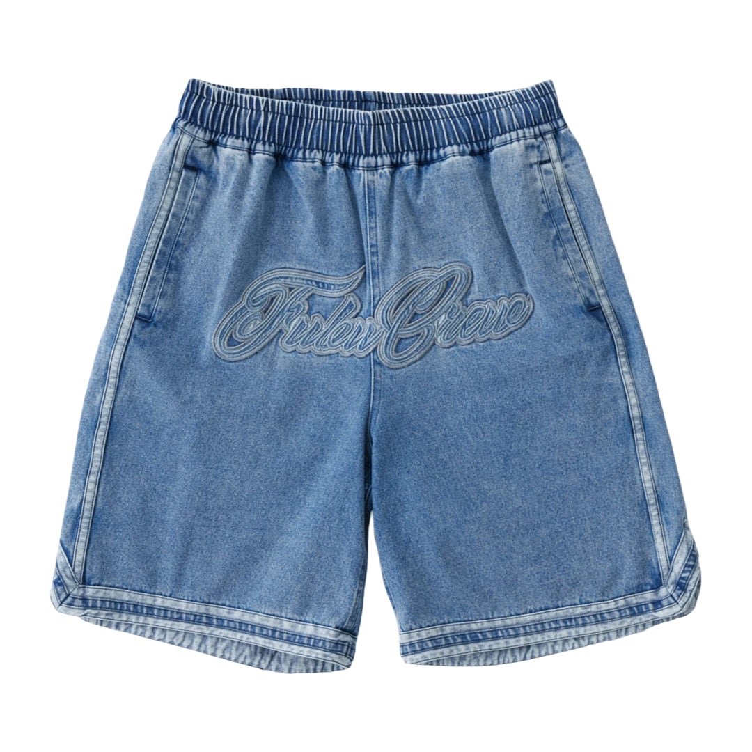 FUBU -Denim Warm Up Shorts- Light Blue