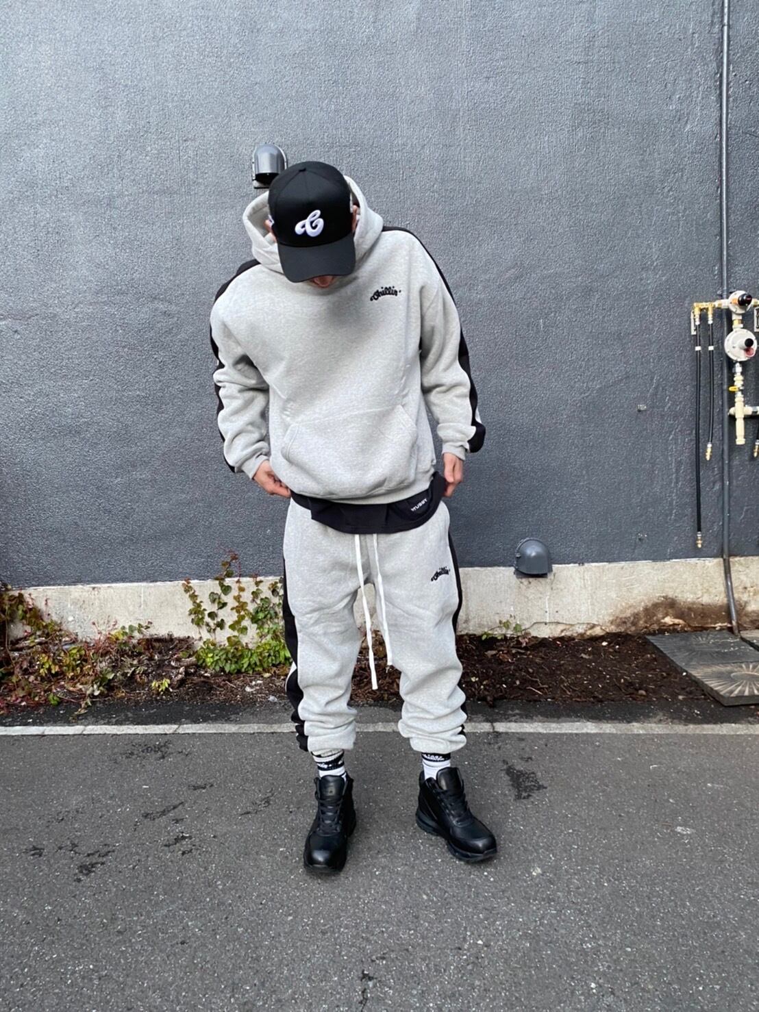 CHILLIN' -LINE SWEAT HOODIE- GREY / BLACK
