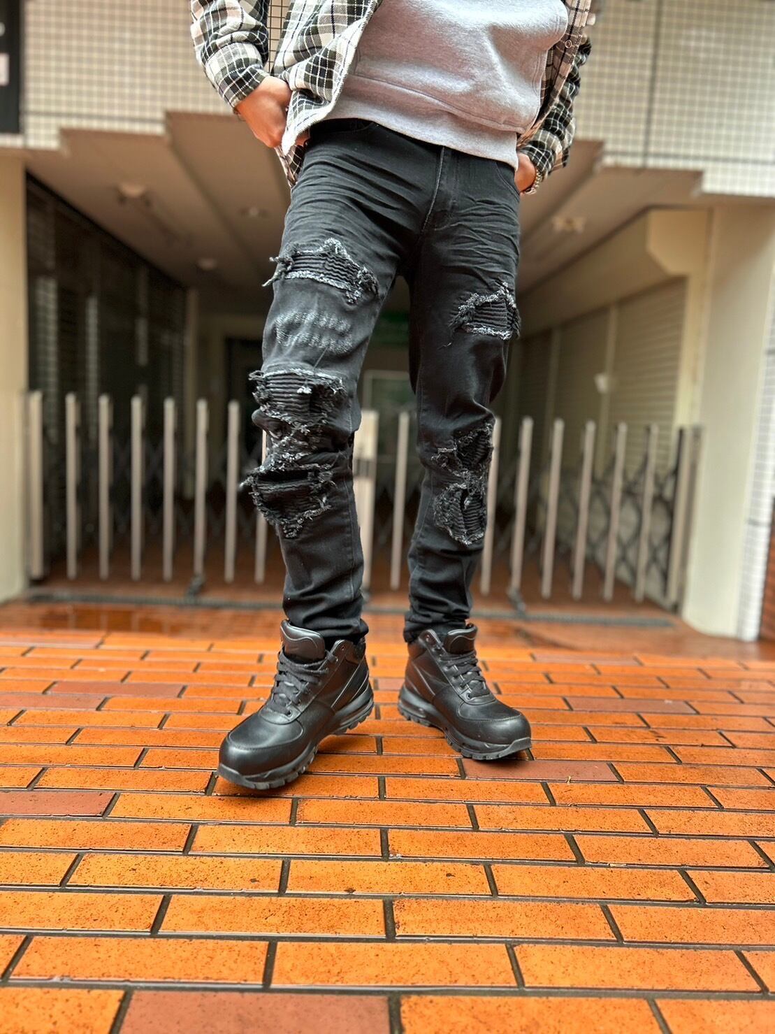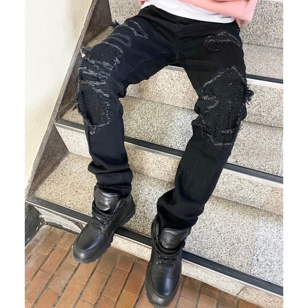 ストレッチの効いたブラックデニムパンツ。