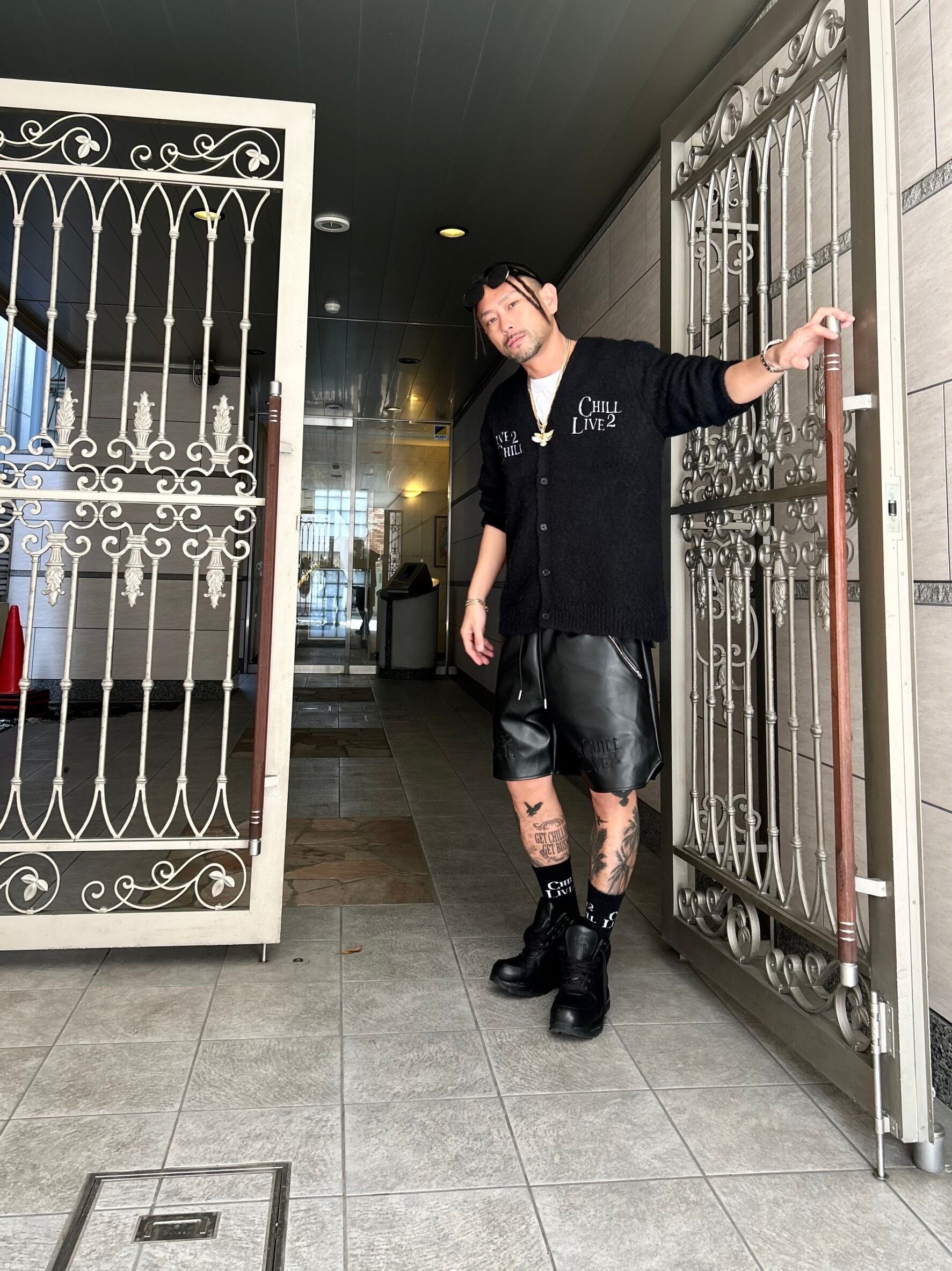 CHILLIN' -L2C C2L LEATHER SHORTS- BLACK