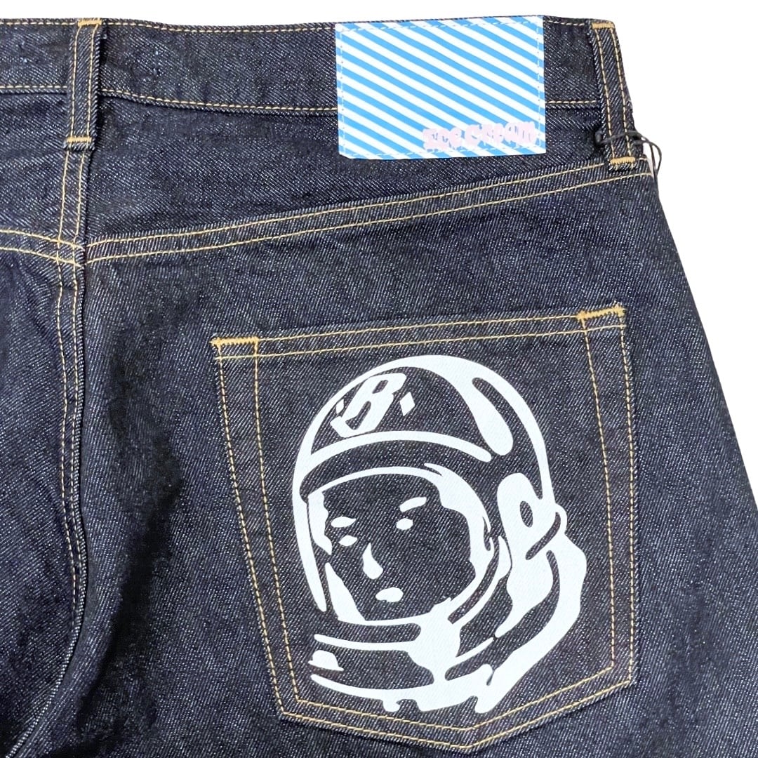 背面ポケットにはヘルメットロゴがプリントされているオリジナルシルエットのデニムです。