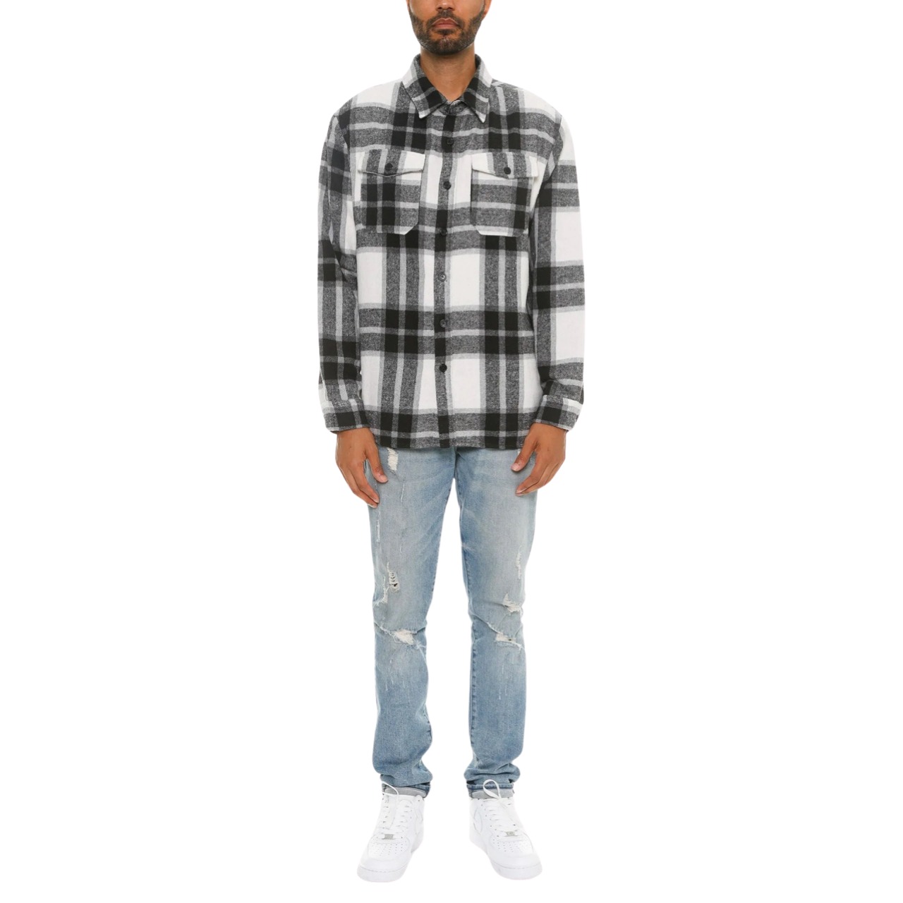 WEIV LA -Flannel Shirt- WHITE / BLACK