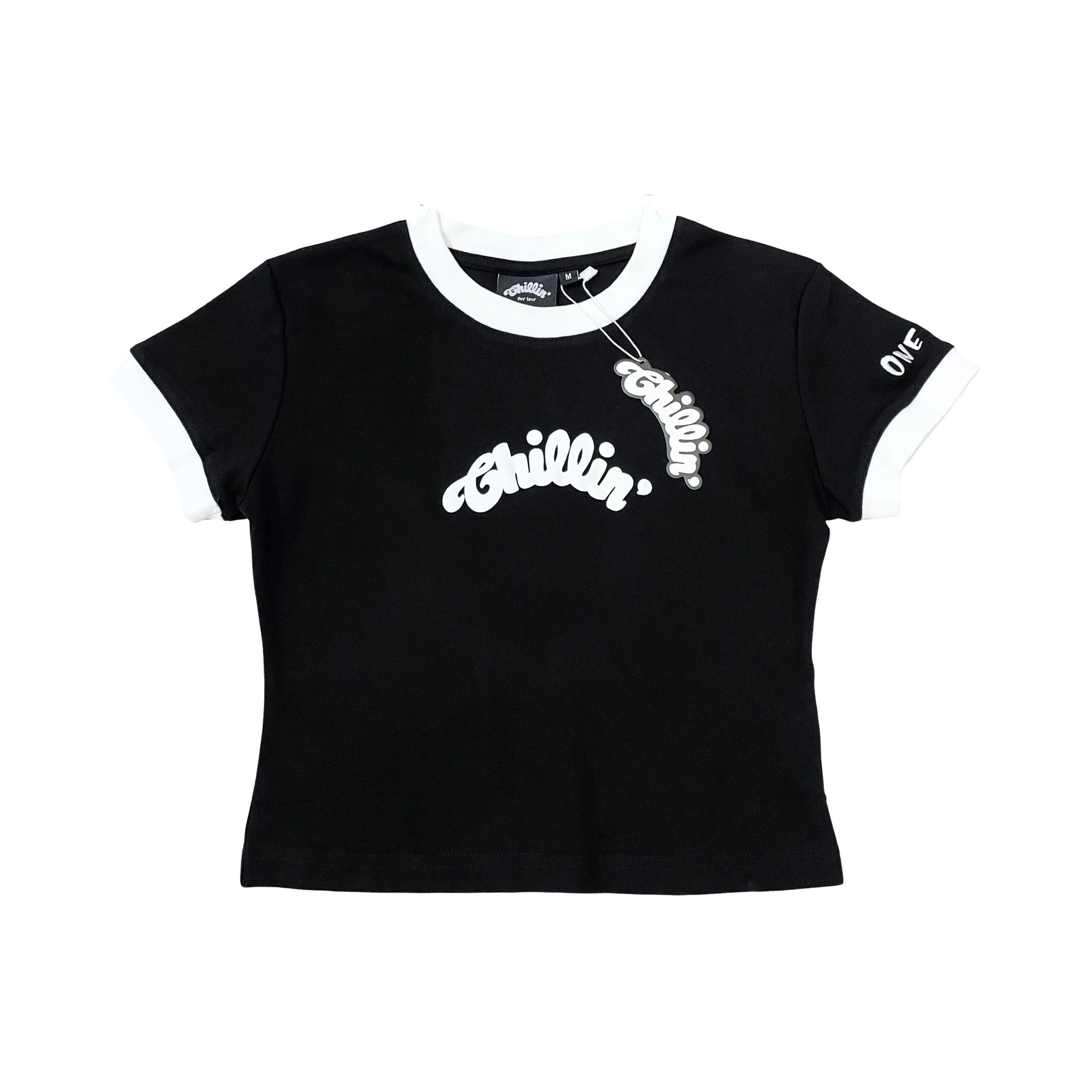 CHILLIN' -Women's RINGER S/TEE- BLACK / WHITE
