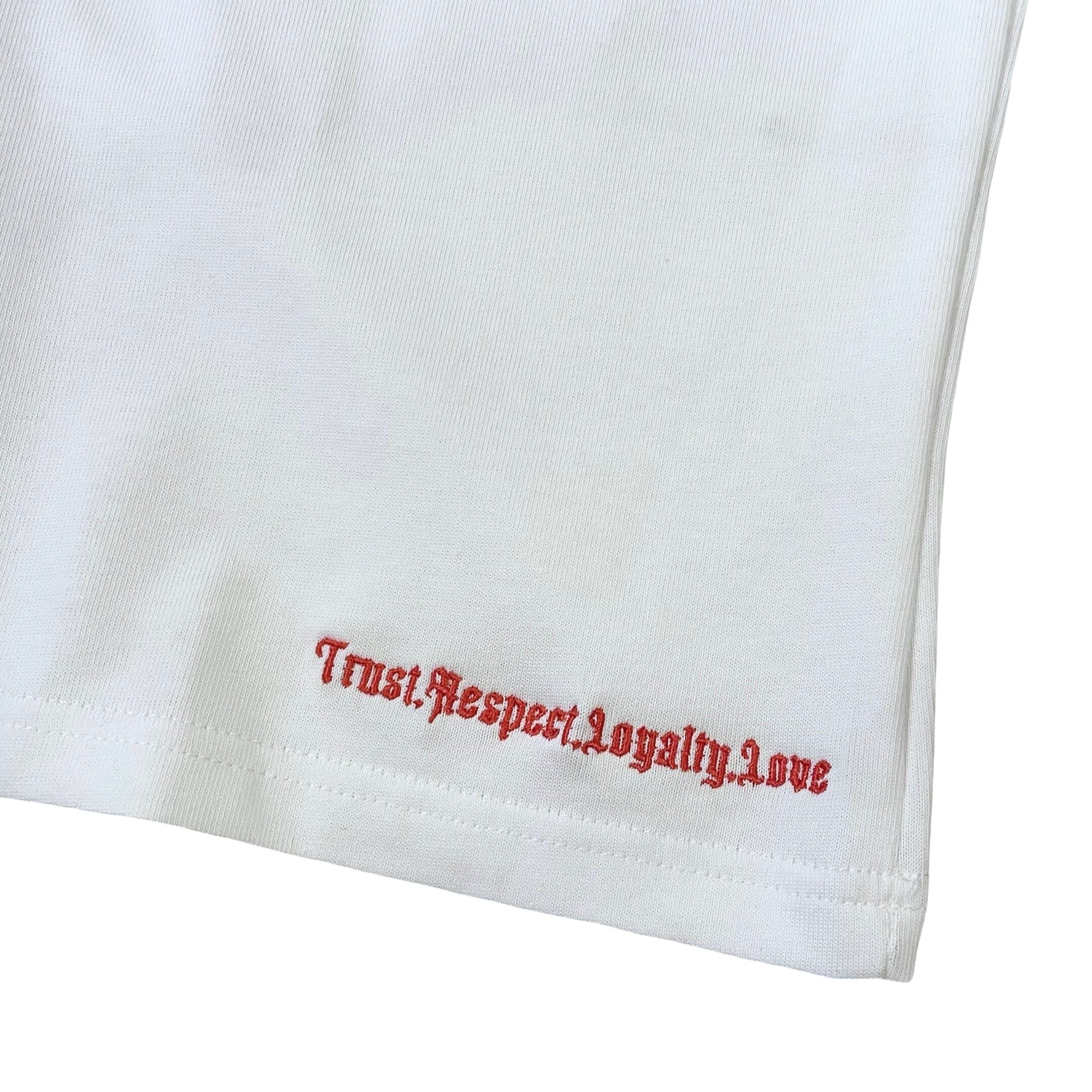 フロントは裾に4つのメッセージの刺繍のみを施しており、バックにはWorld is Wrong Logoが大きくプリントされたTシャツです。